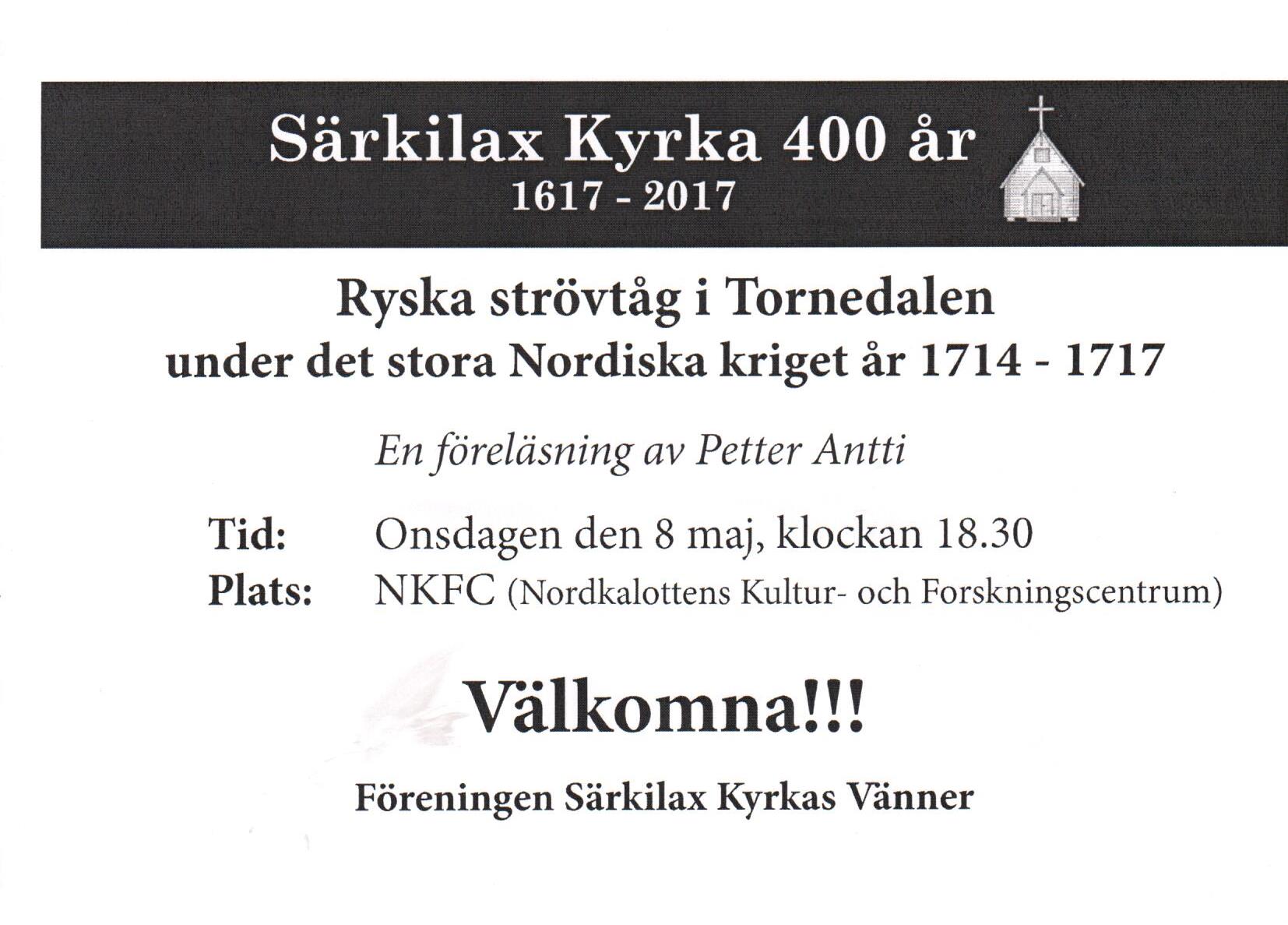 Föreläsning med Petter Antti samt Årsmöte i föreningen Särkilax kyrkas vänner.